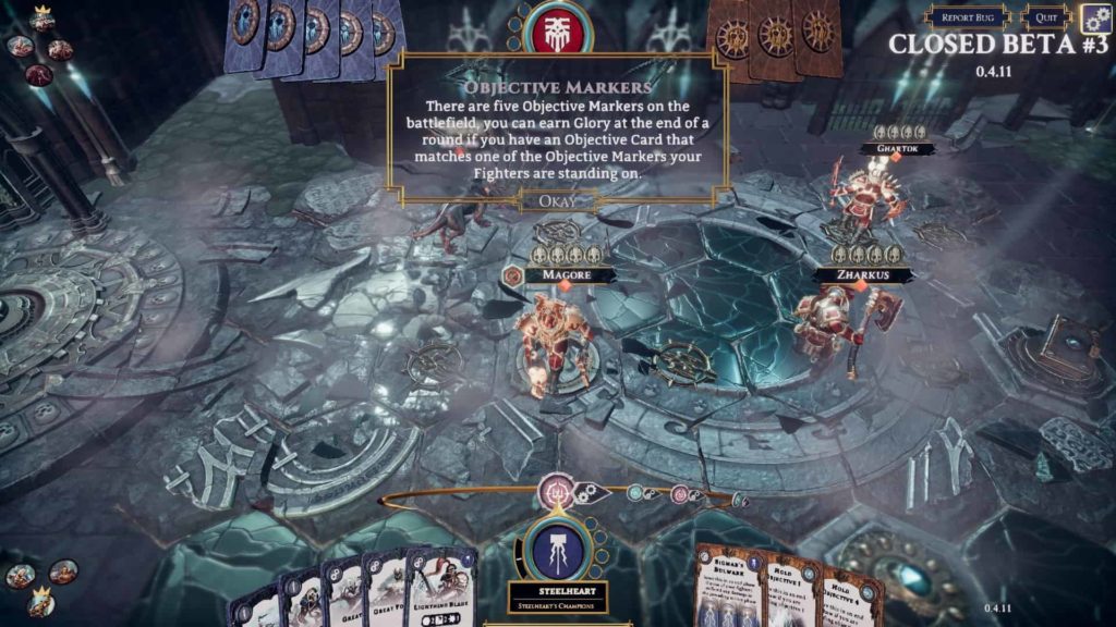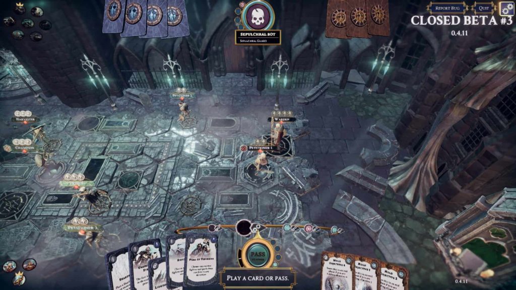 Un dettaglio che ritengo essenziale nell’HUD di un gioco di carte videoludico è l’immediata accessibilità delle abilità citate su una carta. Nel voler trasporre in maniera perfettamente esatta il gioco da tavolo, purtroppo un difetto di Warhammer Underworlds Online diventa proprio questo, ossia quello di proporre la semplice rappresentazione della carta sullo schermo, mostrare un testo un po’ più grande e affidare tutto al fatto che il giocatore, dopo i tutorial, si ricordi sempre cosa vogliano dire Cleave, Knockback 1 o altre parole chiave.