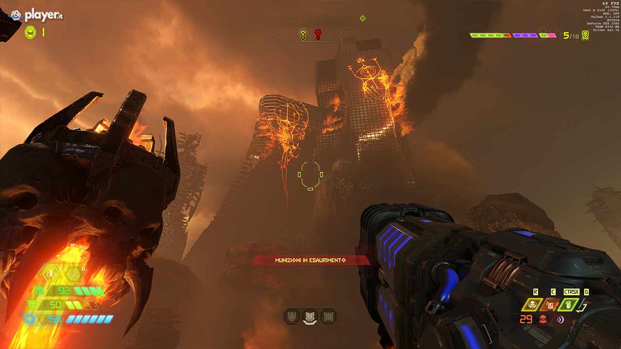 Seguendo la triade del dolore (Glory Kill – Motosega e Lanciafiamme) avremo accesso costante alle tre risorse fondamentali del gioco e potremo progredire senza intoppi, o quasi, infatti ogni demone ha un suo punto debole e dovrete fare una rotazione delle armi per massimizzare i danni e diminuire il più possibile gli assembramenti di demoni, se non lo fate beh… morirete mille volte e piangerete prendendovela con il gioco.