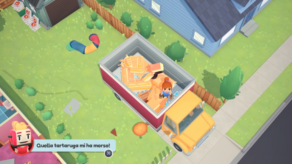 Esteticamente Moving Out ricorda un po’ Overcooked, per la sua leggerezza e la grafica cartoon. MO permette di giocare in modalità assistita e come nel titolo di Ghost Town Games (per altro entrambi hanno lo stesso editore, Team17) è disponibile una modalità coop per giocare in compagnia e sfruttare al meglio tutte le possibilità che offre un gioco come questo.