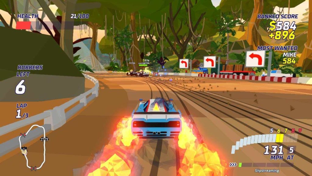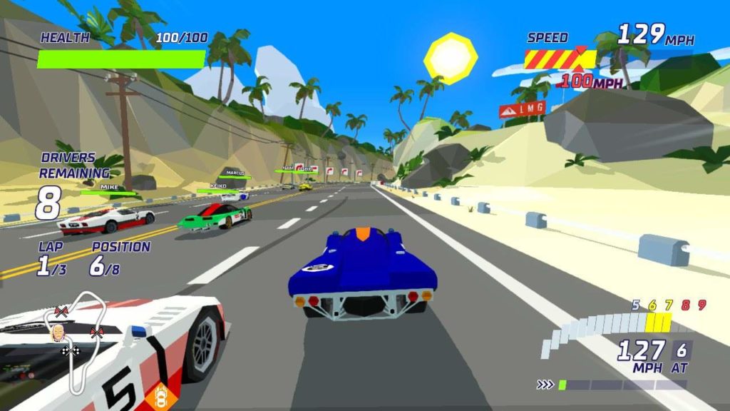 Dal punto di vista prettamente ludico Hotshot Racing, nonostante un modello di guida non particolarmente approfondito, risulta divertente e galvanizzante, con una buona sensazione di velocità dovuta alle accortezze a livello grafico, con un sapiente uso dello spostamento di telecamera o con un altrettanto sapiente uso del motion blur. C’è un po’ di rubberbanding che però non inficia particolarmente la sfida, andando sempre a tenere alta l’attenzione del giocatore (come è normale che sia all’interno di un videogiochi dallo spirito arcade).