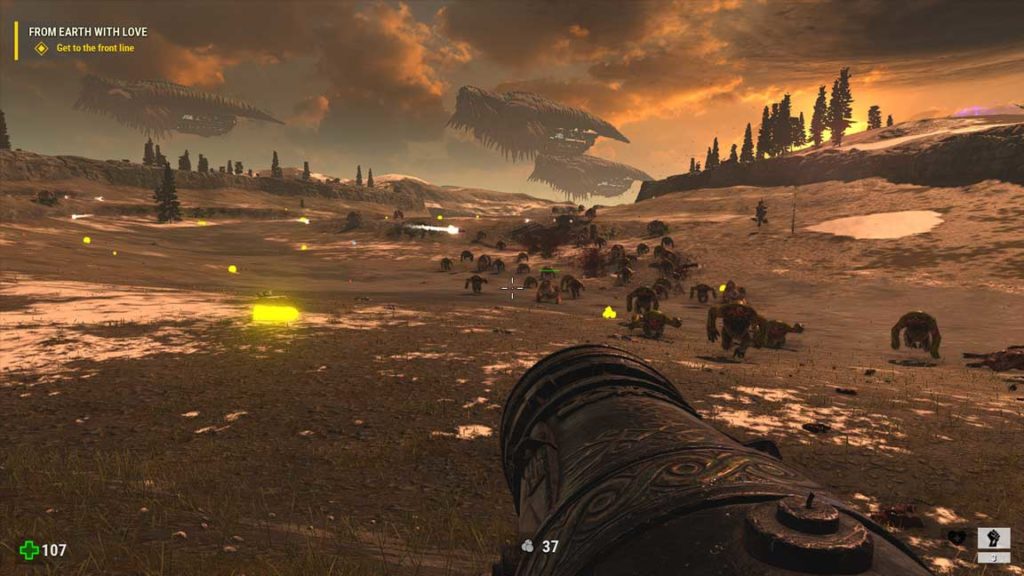 Il più rilevante, ai fini del gameplay, è il sistema S.A.M., un albero di Perk sbloccabili che aggiunge abilità al nostro buon eroe. Il sistema è calibrato per non essere “macrabile”, e l’unico modo per acquisire queste abilità sarà trovare degli artefatti alieni disseminati tra le varie mappe del gioco. Alcuni di questi perk danno dei vantaggi pratici passivi, come la possibilità di correre e sparare o aumentare la velocità di ricarica. Altri invece aumentano la dimensione massima dei nemici che potete uccidere con un colpo melee. Se poi volete proprio fare i Sam, alcuni perk vi daranno la possibilità di utilizzare due armi contemporaneamente o addirittura di poter cavalcare alcuni nemici, dopo averli propriamente storditi. Ce n’è per tutti i gusti e tutti gli stili di gioco!