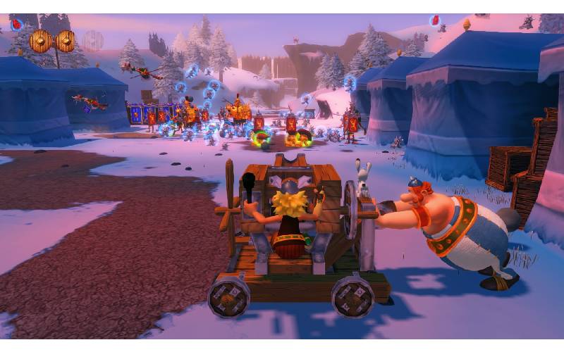 A questo aggiungiamo inoltre la gradevolezza delle animazioni, in grado di trasmettere al meglio il mood di Asterix (come nel caso dei famosi romani lanciati in orbita). Da segnalare infine è un vero tocco di classe per i nostalgici del gioco originale: in ogni momento della partita, premendo il tasto R2 saremo in grado di switchare alla grafica dell’originale del 2003, immergendoci in un’altra epoca ludica. Una modalità in grado di farci comprendere appieno il profondo lavoro compiuto dagli sviluppatori per dare nuova vita a questo piccolo classico.