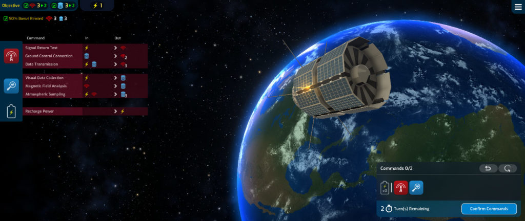 Tutte le fasi di ogni missione sono rappresentate da dei puzzle a turni evocativi delle diverse manovre che umani o sonde sono chiamati a compiere per raggiungere i loro obiettivi nella realtà. Anche le fasi sono eventualmente spalmate su più mesi a seconda della lunghezza delle missioni. Tali rompicapi sono basati sulla gestione logica di iconcine delle risorse entro un limite di turni variabile. In questi puzzle è presente anche una forte componente casuale, che però è in grado di dar fastidio al giocatore solo a difficoltà elevata.