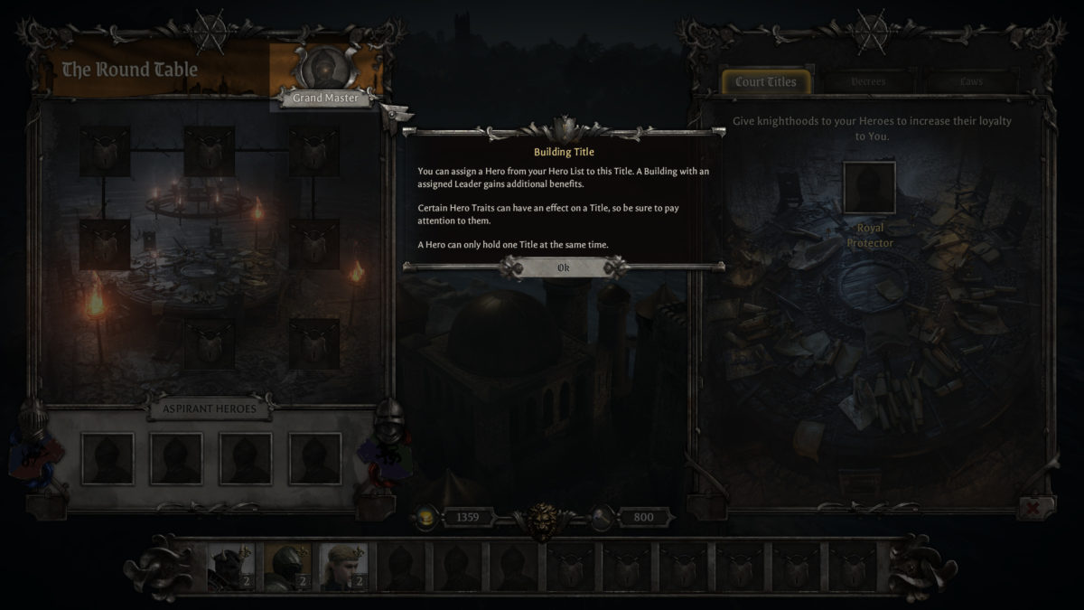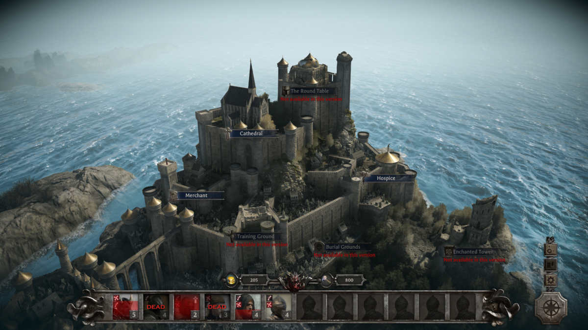 Vi sono poi la cripta, dove possiamo vedere i nostri nostri compagni caduti (e resuscitarli a patto di avere l’oggetto per farlo) e la torre dell’alchimista, dove infondere delle reliquie per forgiare oggetti di rara potenza. Alla Tavola Rotonda inoltre possiamo conferire dei titoli ai nostri cavalieri, oltre che emanare editti, tutte attività volte a farci ottenere bonus passivi più o meno permanenti.