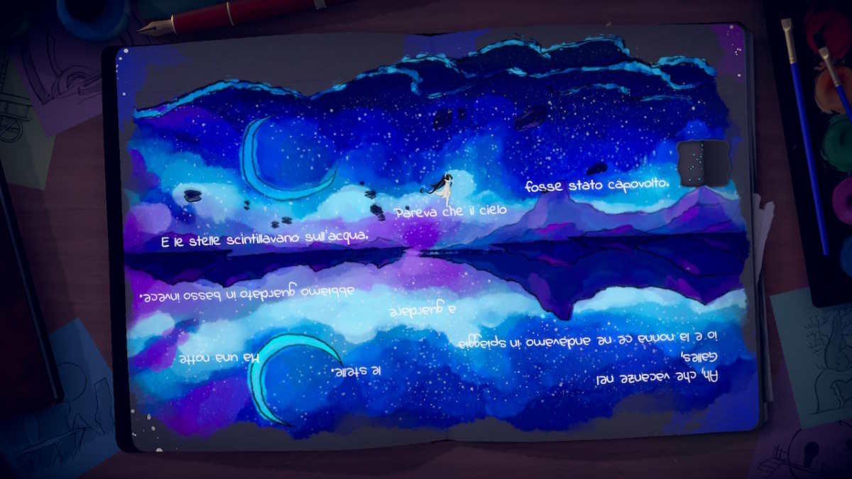 Le pagine del diario scritte dalla piccola prenderanno vita mano mano che la sua icona “salterà” sulle parole, come se fossero i livelli di un platform. In alcune pagine sarà possibile anche afferrare dei piccoli asterischi blu (o neri!): questi ti daranno un’ulteriore possibilità di scovare altre sfumature dell’argomento trattato, facendo luce su piccoli pensieri e particolari nella testa della protagonista.