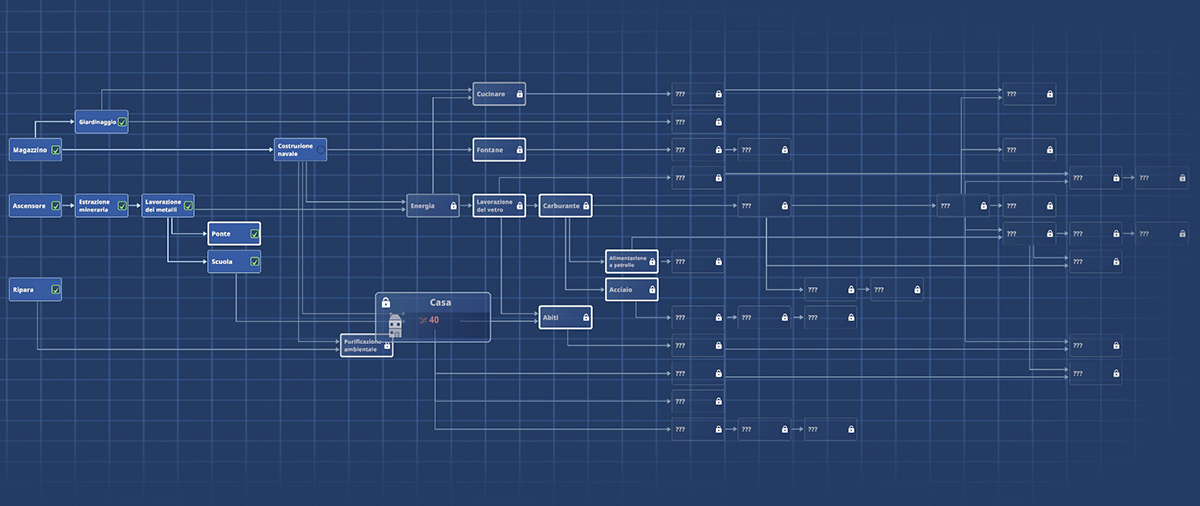 Nell’introduzione dicevamo che la descrizione ufficiale di Before We Leave qualifica il gioco come city builder non violento, ma noi aggiungiamo che l’intera struttura di gioco è un lungo puzzle game: l’albero della ricerca con i vari edifici da sbloccare, le risorse artificiali prodotte da noi e quelle tecnologiche da raccogliere dai depositi degli antichi abitanti, il piazzamento degli edifici sulla griglia esagonale “alla Civilization”, tutto è bilanciato in modo che una cosa sia propedeutica all’altra, e in modo che tutto avvenga in contemporanea con l’esplorazione.