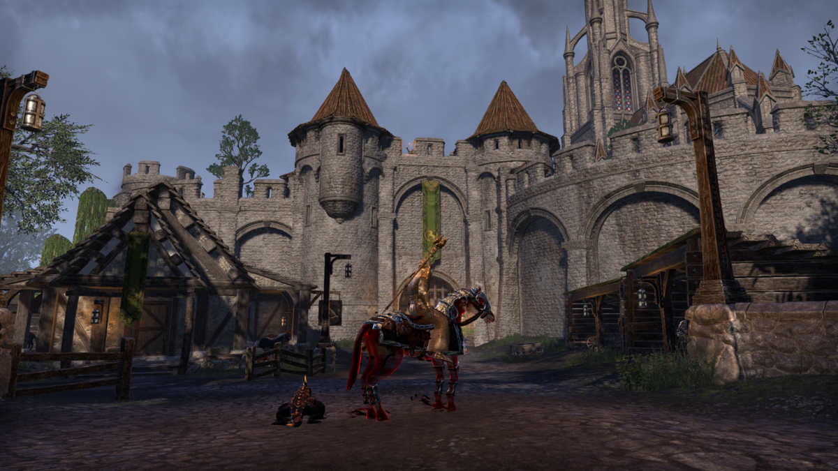 A proposito di crafting: il nuovo hub commerciale di Leyawiin è, a mio avviso, uno dei migliori punti di ritrovo per gli amanti delle professioni. In una singola piazza si trovano tutti i banchi da lavoro: i workbench da carpentiere, fabbro, sarto, incantatore, gioielliere, alchimista e cuoco sono a due passi dalla banca, dagli altari per il respec e dalla Wayshrine, e poco lontano troviamo anche ricettatore e stalliere dedicato all’interminabile stillicidio del miglioramento della riding skill di ciascun personaggio.