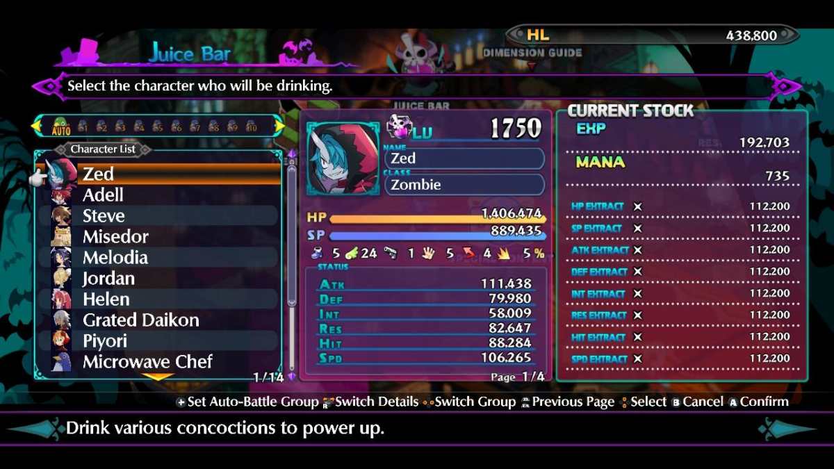 Lo skill shop fa il paio con lo Squad Shop, ovvero un menu in cui è possibile suddividere i propri combattenti in squadroni per dotarli di caratteristiche uniche. Esiste uno squadrone in grado di dotare il personaggio principale del doppio o triplo salto all’interno dell’hub centrale del gioco, uno squadrone per migliorare l’esperienza raccolta nella Juice Bar, uno squadrone per donare ai personaggi le caratteristiche tipiche dei Prinny, i pinguini non morti mascotte del brand.