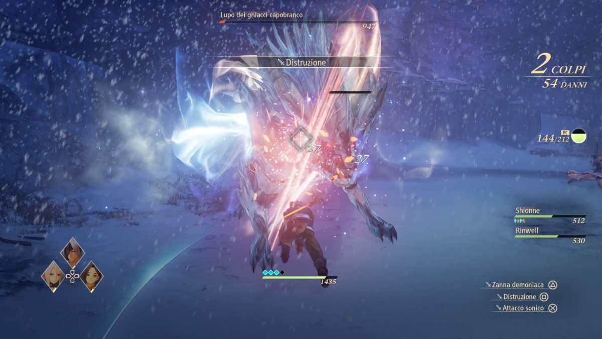 Le battaglie avvengono in arene tridimensionali (ahimé sempre pianeggianti e prive di verticalità, bisogna dirlo subito) dove il giocatore si ritrova a controllare uno tra i sei componenti del party. Ogni personaggio ha il suo stile di gioco, le sue meccaniche esclusive, la sua utilità all’interno delle battaglie