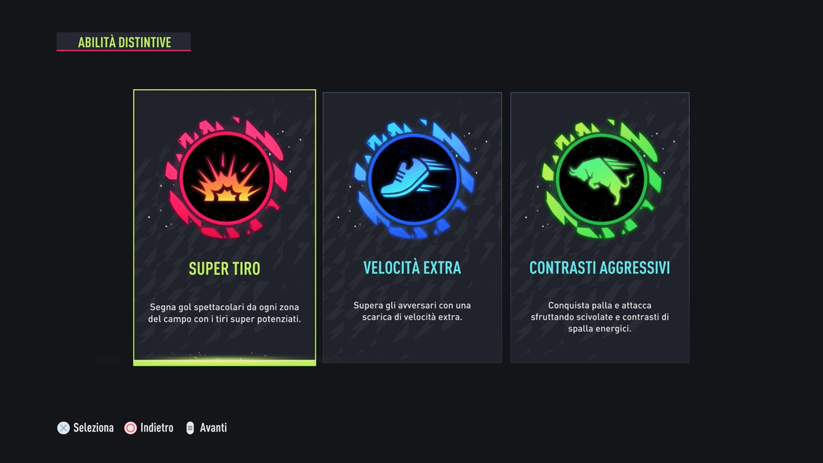 Le Abilità Distintive, invece, attivabili durante il match hanno lo scopo di rimescolare le carte in tavola dato che possono risultare spesso decisive per le sorti di una partita. In fase di creazione avatar al giocatore è chiesto di scegliere una tra tre abilità: Super Tiro, Velocità Extra e Contrasti Aggressivi, attivabile tramite la pressione del tasto R1 (o RB su Xbox). A questo punto per un dato periodo di tempo sarà possibile sfruttare i benefici dell’abilità scelta ed attendere il relativo cooldown per poterla riutilizzare.
