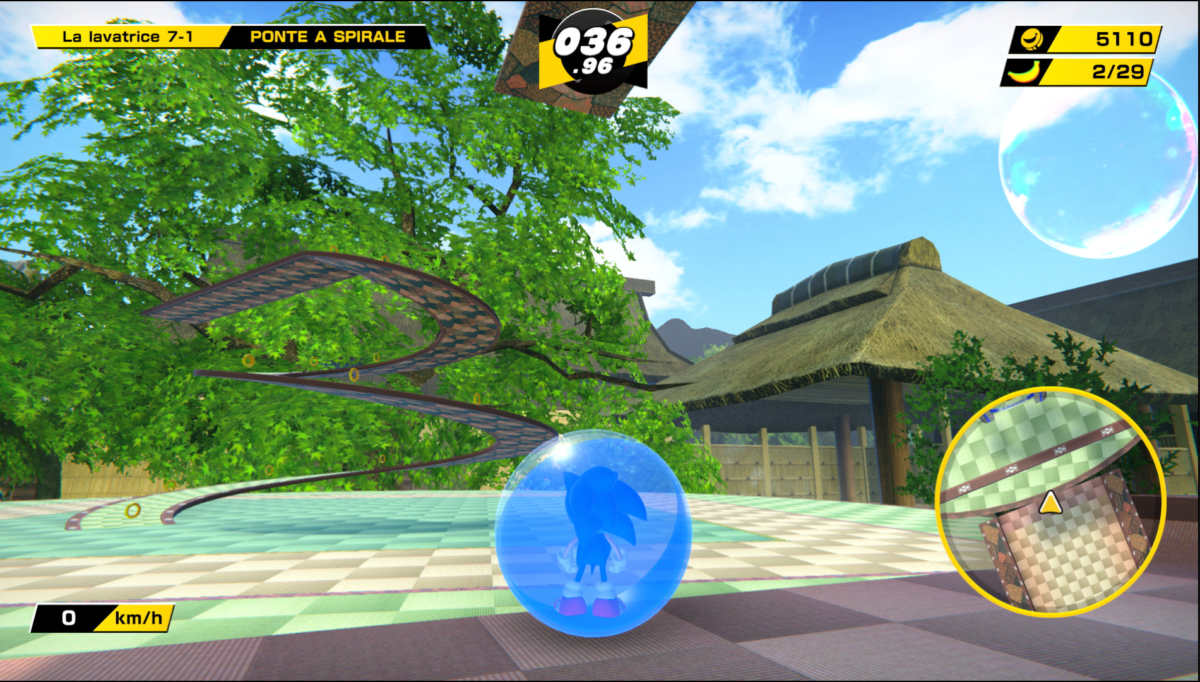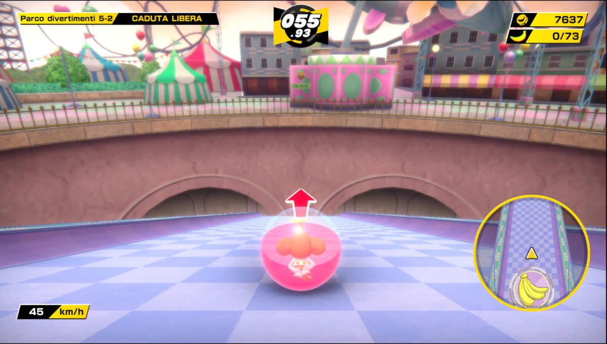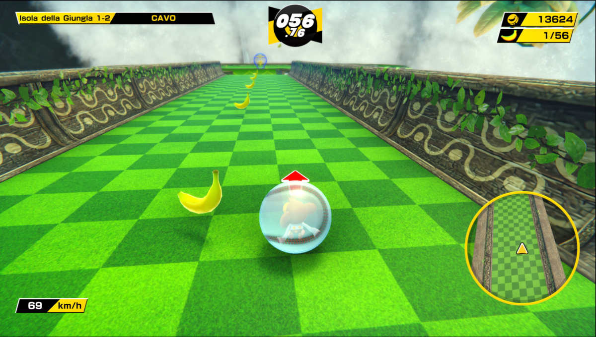 Per chi ancora, magari come me, non avesse idea di cosa stia parlando Super Monkey Ball è un platform arcade in cui andremo ad impersonare una scimmietta racchiusa in una sfera trasparente ed il nostro compito sarà non di muoverla direttamente, ma bensì di inclinare mediante il pad il piano d’appoggio in modo da farla rotolare in una miriade di folli livelli, cercando di raggiungere il traguardo nel tempo limite, evitando di cadere dai bordi e soffermandoci lungo il percorso a raccogliere una quantità incredibile di banane sparse qua e là, che saranno utili per sbloccare diversi elementi nel menu degli extra, tra cui oggetti cosmetici, nuove modalità e nuovi personaggi.