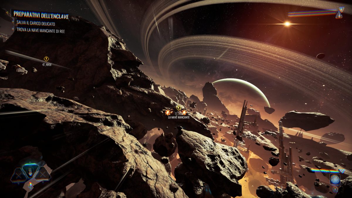 Per quanto riguarda il primo fattore, è bene chiarire subito un punto: non intendiamo l’esplorazione come quella vista in No Man’s Sky. Nel caso del titolo Fishlabs, non ci saranno pianeti da visitare o risorse da raccogliere (se escludiamo le casse di crediti sparse qua e là); nel caso del videogame edito da Deep Silver, invece, l’esplorazione è tutto ciò che accade viaggiando da un punto A ad un punto B. Nel corso dei nostri viaggi nell’immensità della mappa di gioco, non sarà raro imbattersi in tutta una serie di missioni secondarie, che ci sottoporranno richieste di vario genere: dal ritrovamento di una nave scomparsa alla classica difesa dal nemico invasore, passando per la raccolta di determinati oggetti e finendo con la risoluzione di piccoli enigmi.