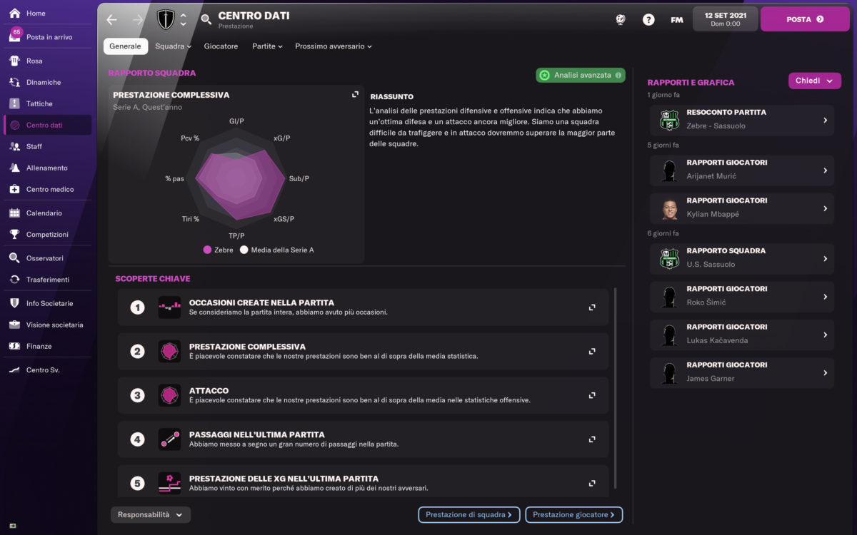 Un’altra grande aggiunta per tutti gli allenatori in questa nuova versione di Football Manager è il Data Hub. Letteralmente un diluvio di informazioni, statistiche, grafici, diagrammi e quant’altro ci si possa aspettare da ogni simulatore gestionale.