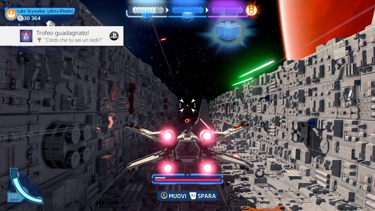 Ecco, quell’impostazione è senza dubbio il core del gioco, ma a emergere durante l’avventura è il tono meravigliosamente dissacrante della “scuola Lego”, che fa della saga nella Galassia Lontana-Lontana un susseguirsi di gag tanto perfette da diventare funzionare sempre, anche quando il giocatore se le aspetta, anche quando la materia è scontata e sai che la bizzarria stile Lego arriverà. Un effetto che risulta buono anche agli occhi di un fan Star Wars medio, che non faticherà a passare le sue sessioni di gioco a caccia di ester-egg, citazioni e, ovviamente, parodie varie.