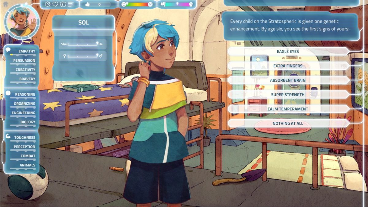 Dopo aver creato il nostro adolescente ideale, ci accorgeremo ben presto che sotto la patina di estrema abitabilità si nascondono minacce e insidie pericolosissime, e che contemporaneamente la nostra stessa colonia di appartenenza nasconde backstory con segreti, personaggi dalla dubbia morale e prese di posizione discutibili. Crescere in questo mondo significa muoversi tra maestose meraviglie, ma anche tentare di resistere a orrori inqualificabili ed evitare disastri più o meno annunciati.