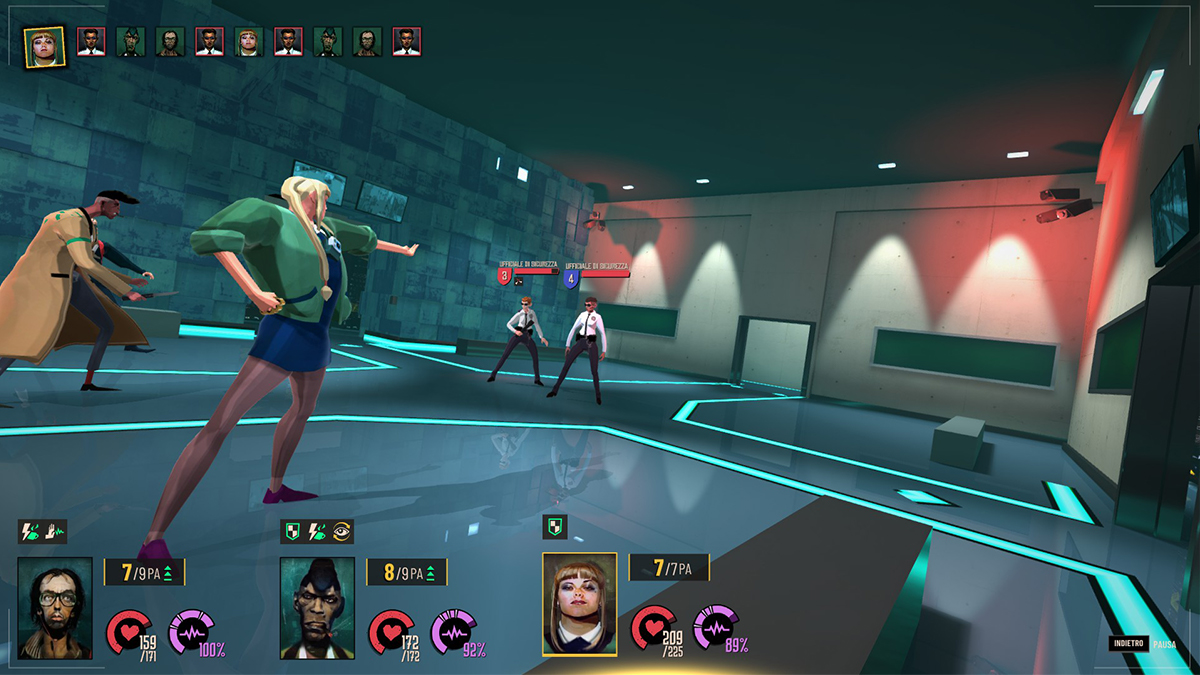 Se il fumetto noir e l’immaginario distopico elevano il comparto artistico di Sunday Gold, il gameplay è invece potenziato una struttura RPG ben bilanciata da abilità, esperienza e livelli, con tanto di turni che scandiscono sia il passare del tempo nei diversi scenari di gioco, sia i combattimenti contro i nemici.