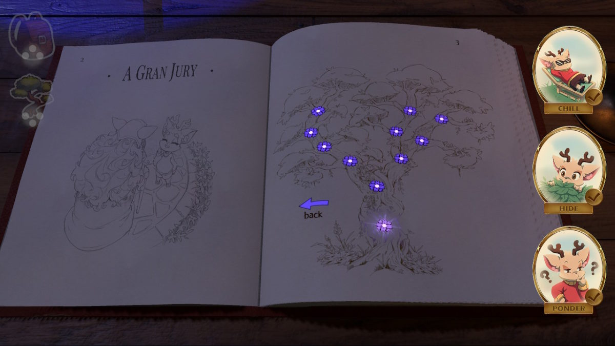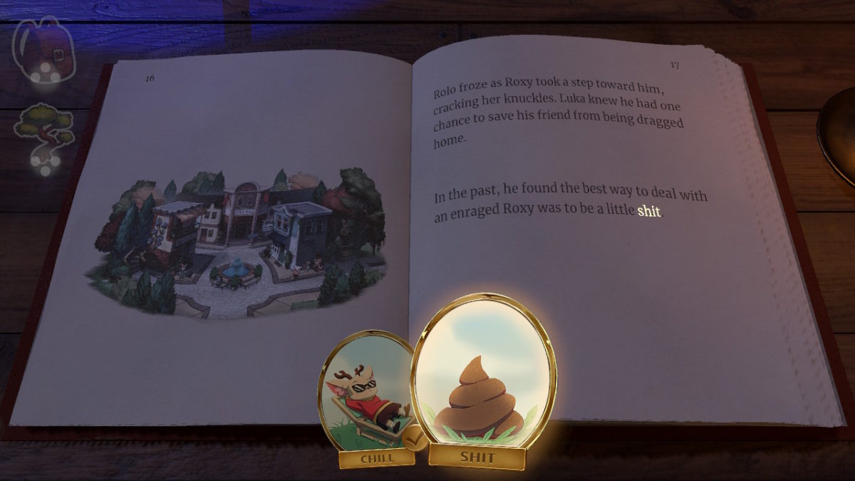 Le scelte in mano al giocatore saranno collegate ai Charms delle parole che troveremo parlando con gli abitanti ed esplorando a fondo tutti gli scenari di Beacon Pines. Giunti a una scelta decisiva, dovremo scegliere la parola più adatta a completare la frase del libro, così da proseguire verso un determinato ramo della narrazione.