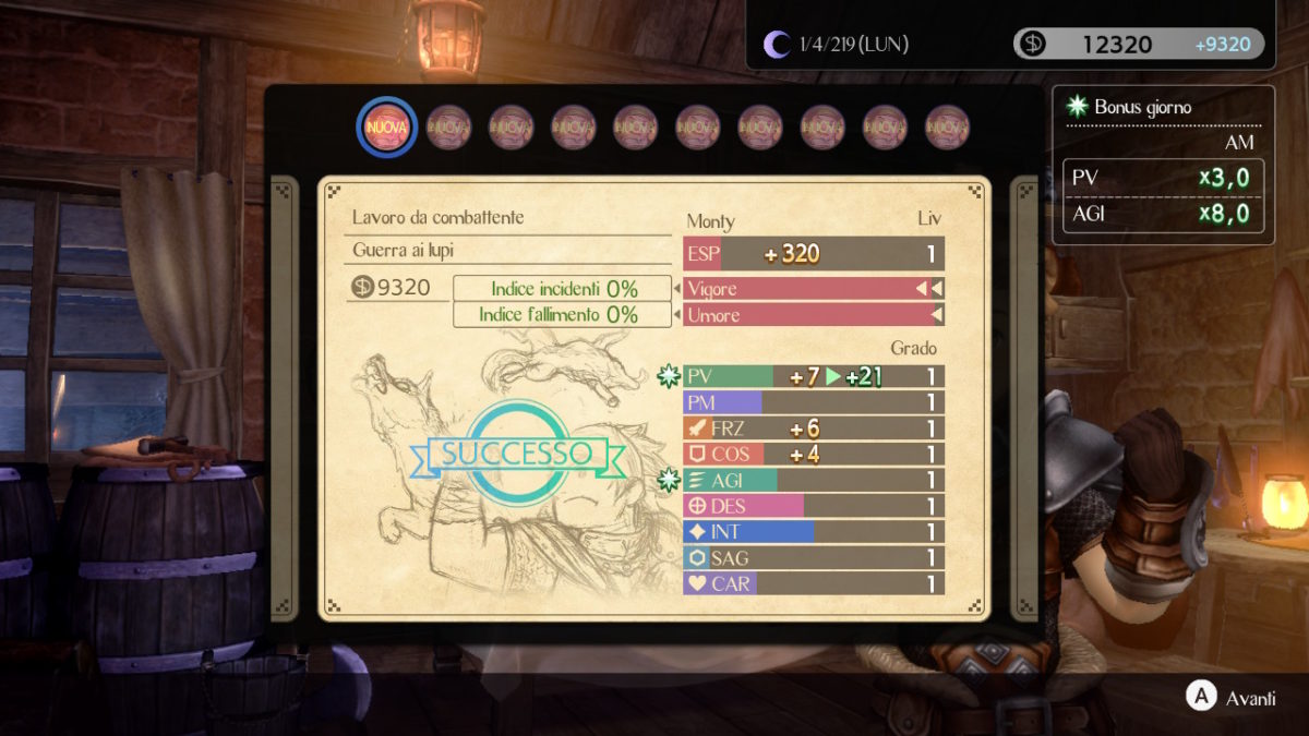 Anche la barra dell’Umore è molto importante: quanto più alto è il valore, più alta è la percentuale di successo per quel determinato lavoro. Se l’Umore è basso, il rischio di fallimento è dietro l’angolo.