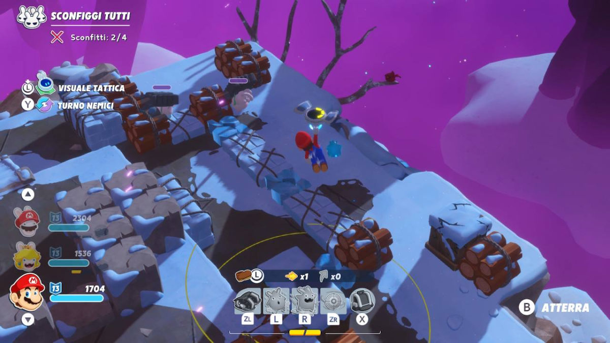 Mentre il gruppo di raffazzonati eroi viaggia da un pianeta all’altro, si respira quindi una narrativa semplice e basilare, efficace però nel far risaltare ogni personaggio, soprattutto i Rabbids. Mario, Peach, Luigi e un incredibile Bowser, gli unici eroi appartenenti alla schiera Nintendo, restano quasi sullo sfondo mentre di volta in volta incontriamo i nuovi personaggi creati da Ubisoft e ne condividiamo le loro storie.