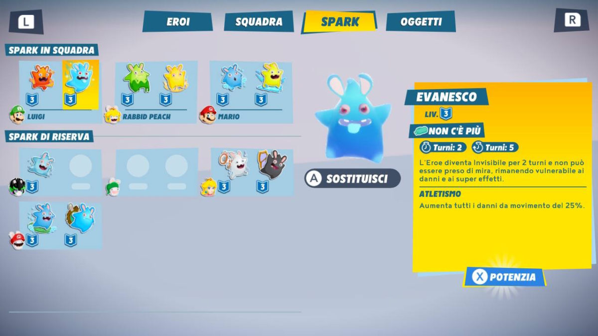 C’è anche una schermata dedicata interamente agli Spark, dato che anche loro entrano in battaglia come una sorta di equipaggiamento degli eroi. Ci sono un’infinità di questi esserini, e offrono tutti un valore strategico in più grazie ai loro poteri utilizzabili in battaglia. Alcuni di questi, tra l’altro anche parecchio potenti, possono essere trovati solo attraverso missioni secondarie.