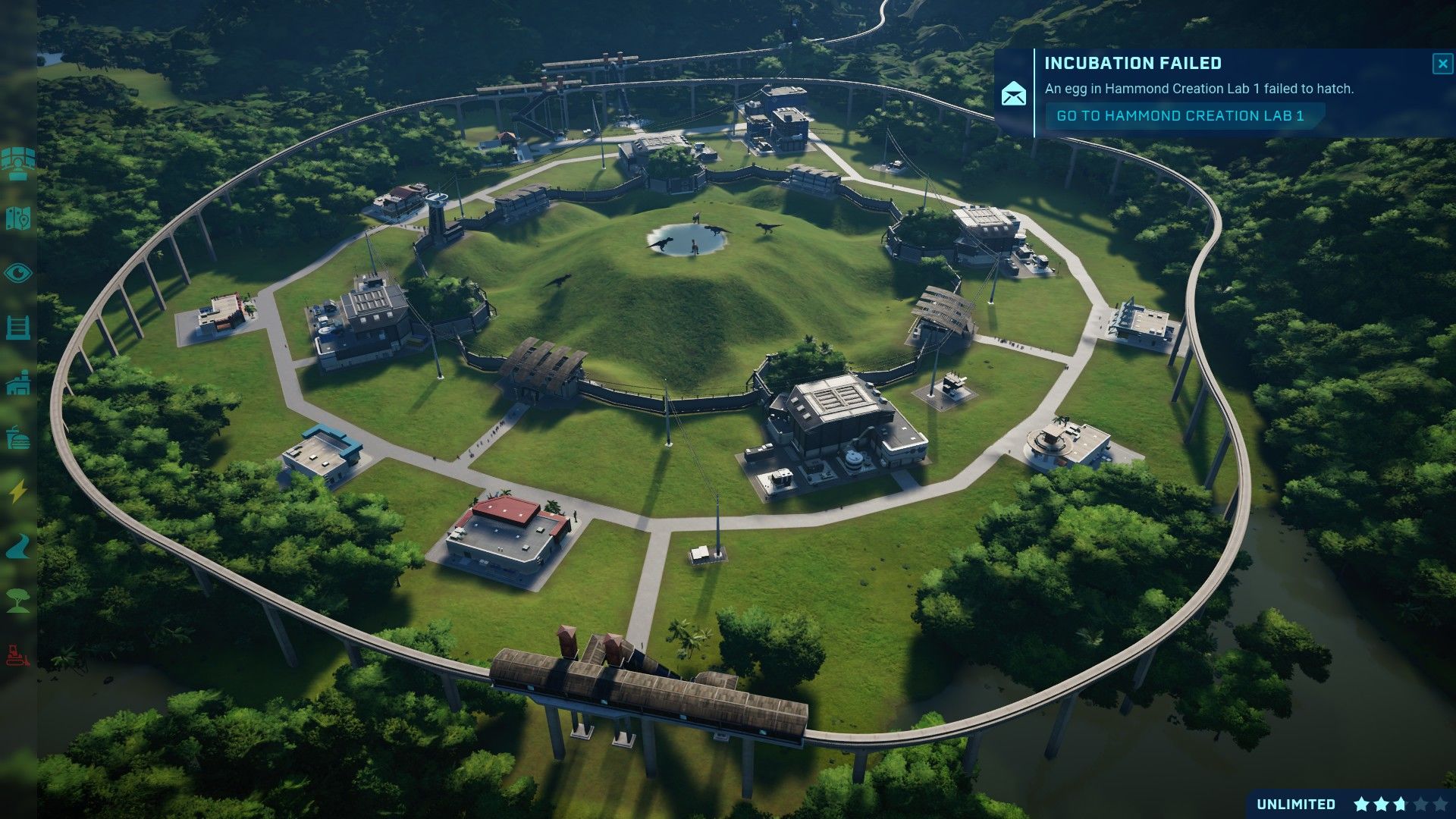 Il pubblico dei nostri giorni, però, non si accontenterà di semplici dinosauri ed ecco che entra in gioco la vera novità di questo titolo, l’ingegneria genetica. Proprio come nel film Jurassic World avremo accesso a nuove tecnologie del Centro di Ricerca che ci permetteranno di modificare il DNA dei dinosauri per aumentarne l’attrattiva verso il pubblico, potremo cambiare parametri come la resistenza alle malattie, la longevità e perfino il colore della pelle ma tutto ciò avrà un prezzo sempre maggiore oltre ad una percentuale più alta di fallimento di incubazione presso le nursery. Portando al livello massimo il Centro di Ricerca sarà possibile creare l’attrazione definitiva, l’Indominus Rex!