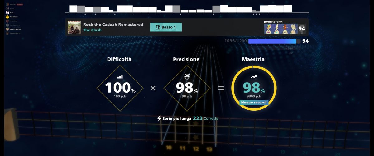 Nel menu di pausa per fortuna si possono anche mettere in ripetizione sezioni di una canzone, e si può rallentarne il tempo oltre che aumentarne o diminuirne la difficoltà così da imparare gradualmente il brano. Il mio metodo di studio sia con chitarra che con basso è stato il seguente: brano sempre al 100% della difficoltà così da comprendere tutte le note da suonare, per poi selezionare una sezione per volta da imparare partendo dal 50% della velocità, la quale aumenta gradualmente ogni volta che totalizzo un punteggio di esecuzione perfetto.