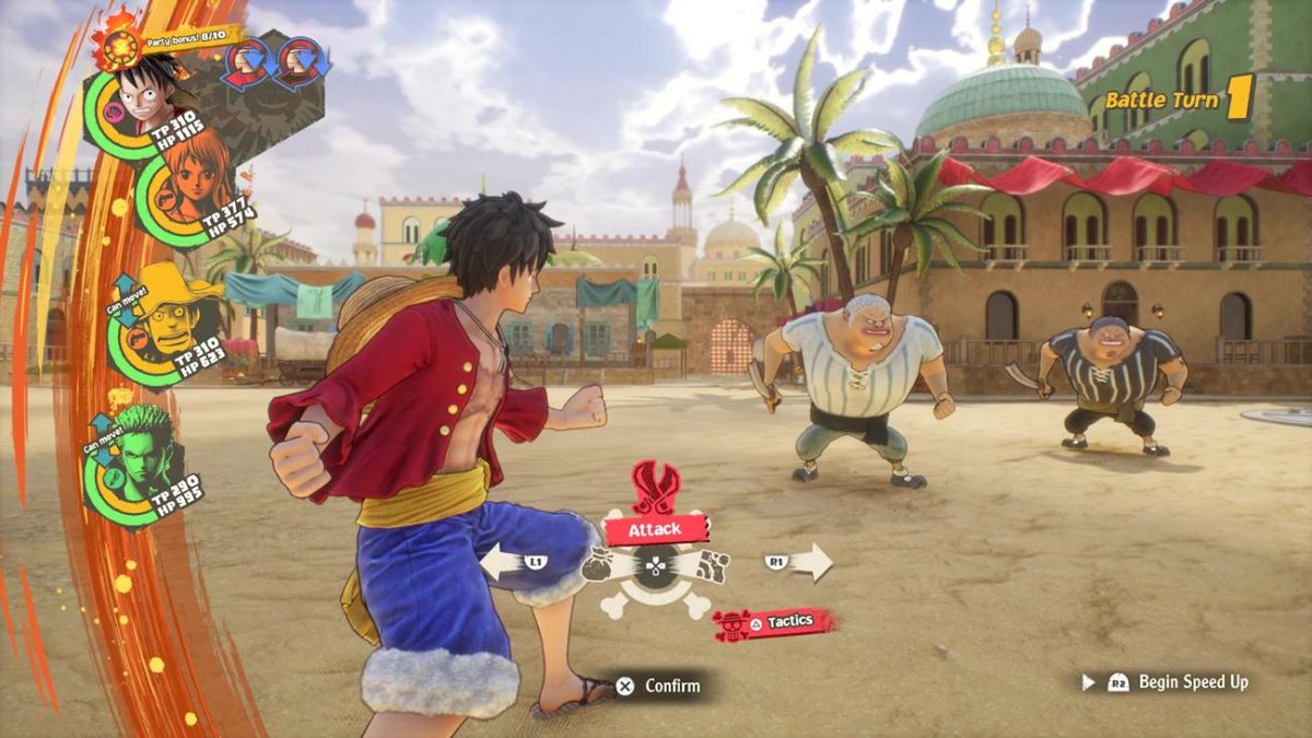 I personaggi “Potenza”, come Rufy o Sanji, causano facilmente ingenti danni ai nemici che appartengono alla categoria “Velocità”, che a loro volta saranno molto pericolosi contro personaggi “Tecnica”, come Zoro o Nico Robin, e così via. In ogni momento è possibile cambiare la posizione e i membri della nostra squadra, meccanica che si incastra benissimo con il sistema a zone e che offre una godibilissima libertà.