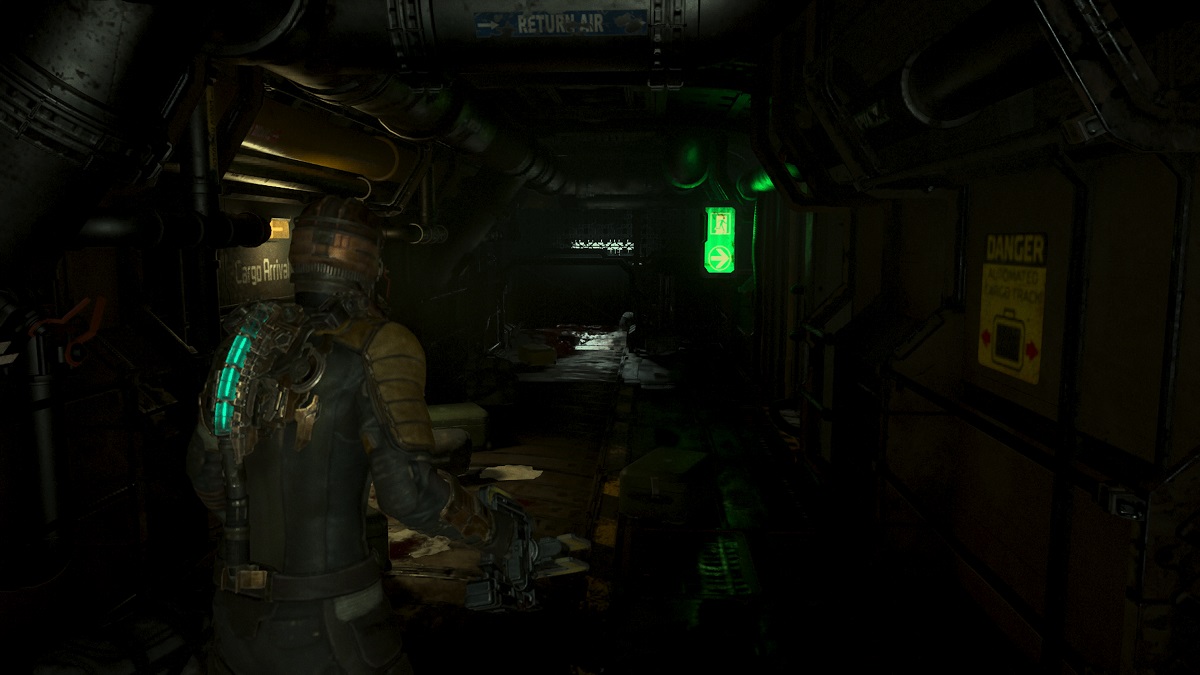 Animazioni, effetti, ambientazioni, modelli dei personaggi e dei necromorfi sono stati ricostruiti in Frostbite Engine e inseriti in un contesto estetico più scuro e asfissiante. Ora l’Ishimura è maggiormente claustrofobica grazie a un’illuminazione che mostra solo ciò che serve, lasciando il resto nella penombra, cosa che costringe il giocatore a mirare anche durante l’esplorazione per fare in modo che la luce della torcia delle armi fenda flebilmente l’oscurità, alla ricerca del percorso giusto e di nemici in agguato. In Dead Space remake, tornano alcuni elementi fondanti del gioco originale, come la possibilità, attraverso la pressione della levetta analogica destra, di tracciare una linea luminosa che mostra il prossimo obiettivo, e ovviamente l’hud diegetico che ha fatto la fortuna dell’opera di Visceral Games ai tempi.