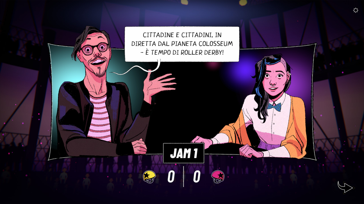 Una volta dato il nome alla squadra, siamo pronti a gettarci nella mischia di pattinatrici negli stadi. A proposito di questo, mi è capitato in più caricamenti e nuove partite di subire un cambio di nome della squadra senza alcun motivo, ma probabilmente è un bug che sarà sistemato al lancio.