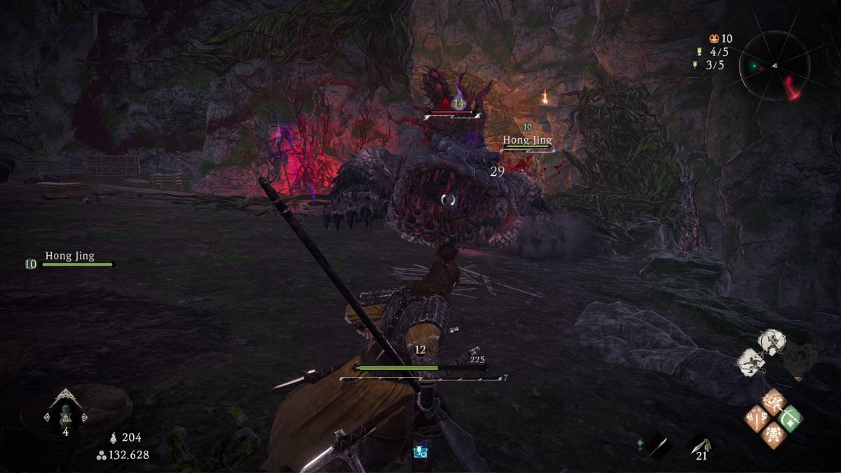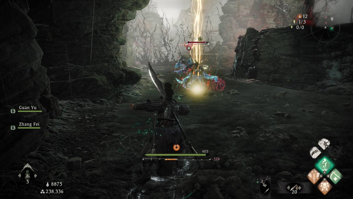 La cara barra della “stamina” molto comune in vari giochi action è rivisitata in Wo Long e sostituita con la barra dello Spirito. Lo spirito può assumere valore positivo o negativo in base alle nostre azioni e dopo essere stato accumulato può essere sfruttato per sferrare potenti attacchi spirito o lanciare stregonerie. Colpire i nemici con attacchi semplici o deflettere perfettamente gli attacchi ci permetterà di accumulare spirito positivo, mentre venire colpiti o schivare con un tempismo non perfetto lo faranno diminuire, rendendo la pratica del “dodge spam” estremamente rischiosa. Arrivare al livello minimo di spirito e venire colpiti ci porterà infatti in uno stato di “breakdown mentale” in cui saremo completamente vulnerabili al nemico ed impossibilitati a muoverci.