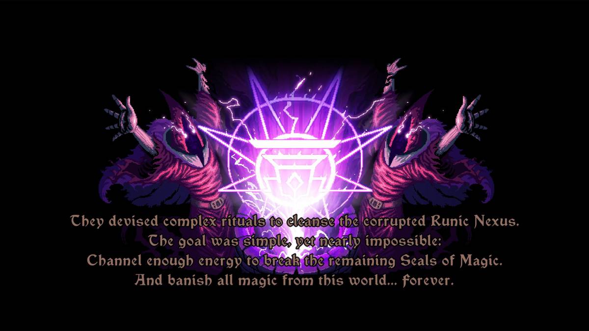 Per quanto la trama sia priva di personaggi veri, e per quanto non riesca a dare ulteriori spunti di lore, l’ambientazione e il contesto post-apocalittico/post-magico di The Last Spell creano grazie a grafica e musiche un’atmosfera dinamica e tensiva, ora con le tonalità prevalentemente scure della pixel art tagliate da dettagli di un viola violento, ora con le plettrate in palm mute e accordature basse delle chitarre in sottofondo.