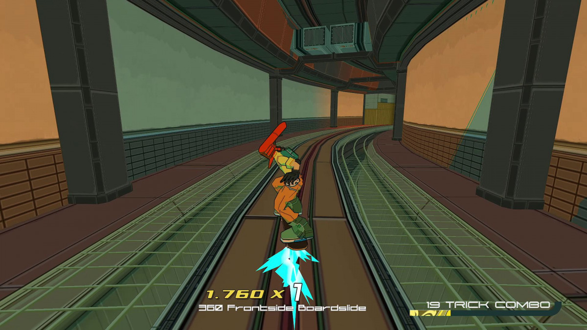 Il core gameplay, quindi, prevede che lo skateboard sia soltanto una maniera per eseguire determinate manovre di movimento e che i livello siano pensati con al centro un’esperienza da platform. L’avanzamento, in questo caso, è legato a doppio filo con l’esplorazione certosina dei livelli attraverso la raccolta di punti reputazione, questi direttamente collegati ai graffiti da eseguire in giro. Per poter marcare il territorio sarà necessario raggiungere determinati spot (ben evidenziati dall’interfaccia di gioco) e portare a termine un simpatico minigioco; in base all’ordine con il quale si sono collegati i vertici di un poligono si avrà la possibilità di eseguire questo o quell’altro graffito. Il book si potrà progressivamente arricchire attraverso il ritrovamento di schizzi e bozzetti, questi nascosti in maniera certosina nei livelli o ottenibili dopo aver completato determinate sfide secondarie, proprio come accade per i brani musicali.
