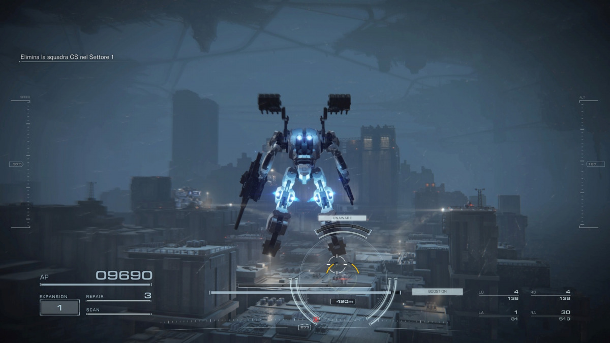 Come nei precedenti capitoli in Armored Core non esiste un selettore di difficoltà: il giocatore deve imparare a sue spese, game over dopo game over, cosa funzione, cosa no e sopratutto in quali situazioni fare una scelta è meglio di farne un’altra. Di certo tra tutti i videogiochi From questo è uno di quelli con uno degli inizi più frustranti, con un tutorial boss tutt’altro che banale, complice anche qualche stortura dell’interfaccia.