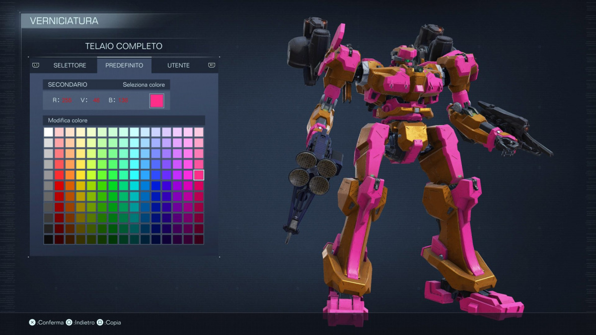 Ad ogni game over si avrà la possibilità di ritornare nella schermata di assemblaggio per modificare il proprio mecha con gli altri pezzi che si hanno in inventario, così da migliorare il proprio approccio nei confronti delle situazioni proposte. Queste scelte riescono in un duplice e agognato obbiettivo: rendere il videogioco più accessibile nei confronti di tutti i giocatori senza snaturare troppo l’esperienza e evitare l’eccessivo menu crawling che invece infestava i precedenti capitoli.