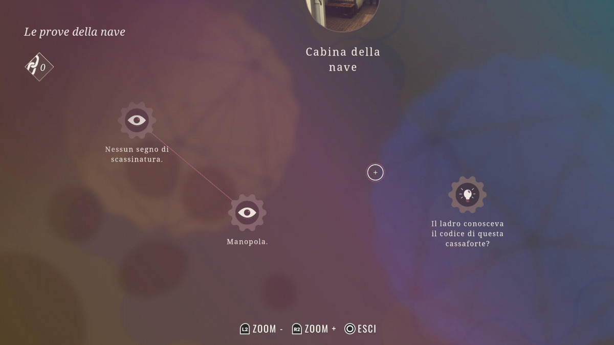 Il gioco si termina in circa 4 ore durante le quali saremo impegnati a toccare tutto ciò che verrà evidenziato come interattivo da un’icona ben visibile e parlare con i personaggi al fine di sbloccare deduzioni da riordinare nella mappa mentale. Questa è rappresentata da un menu molto intuitivo in cui Poirot inserisce tutte le supposizioni, gli indizi e le ipotesi fino a quel momento raccolte. Ogniqualvolta si inizia una scena del crimine, si sbloccherà una mappa mentale collegata a quella specifica scena. Il nostro obiettivo è collegare gli indizi in modo che formino una deduzione basata sulla logica, fino a creare una vera e propria rete che porti a una conclusione dell’indagine.