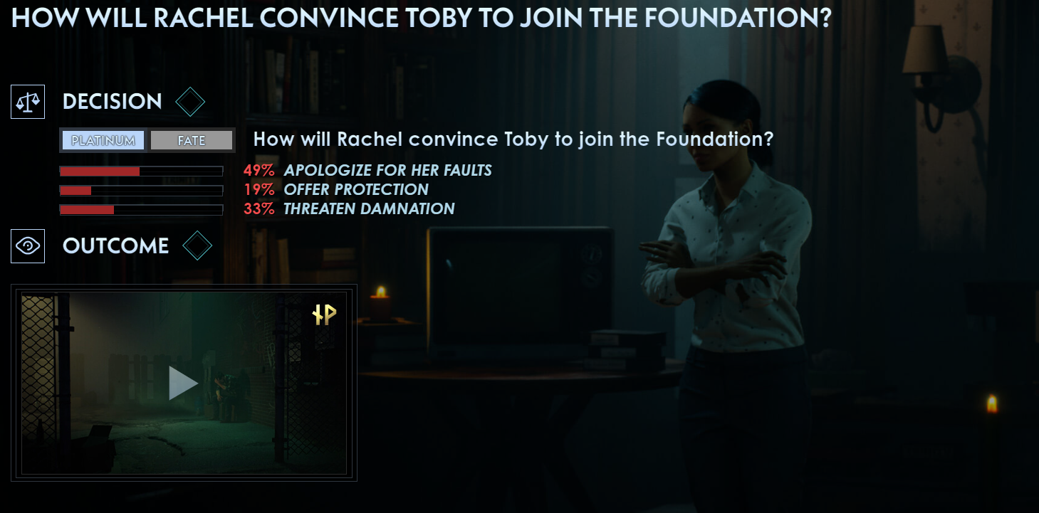 A lasciare più perplessi è stato il sistema di monetizzazione il cui funzionamento non è stato spiegato nei minimi dettagli quando ci sarebbe stata l’occasione. La struttura di Ascension fa sì che questo sistema non sia solo particolarmente predatorio, ma pure goffo. Ma ci torneremo dopo. Ascension è una web serie interattiva non live action – sfrutta l’Unreal Engine – suddivisa in episodi che vengono giornalmente trasmessi sul sito ufficiale e in parti giocate durante le quali gli spettatori diventano parte attiva potendo votare sull’esito di certe scene.