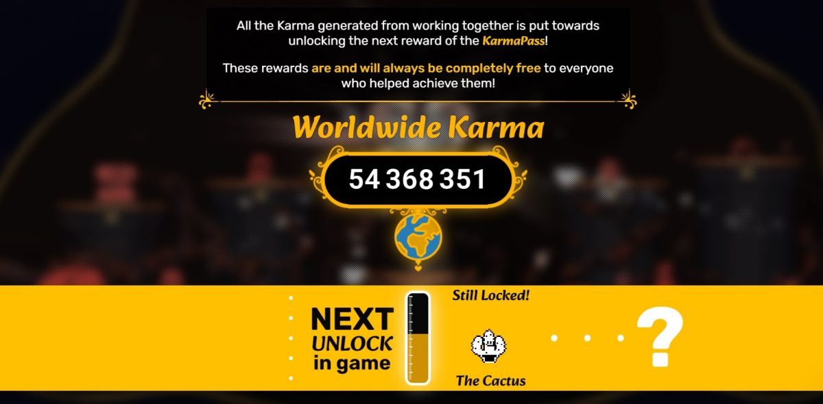 KarmaZoo sembra avere anche buone prospettive future vista la longevità generale del titolo e l’interesse degli sviluppatori a inserire nuovo contenuto a poco a poco. Il KarmaPass calcola la quantità totale di Karma accumulata da tutti i giocatori globali: al raggiungimento di certi obiettivi, vengono inseriti nel gioco nuovi personaggi, minigiochi e via dicendo. L’idea di lavorare tutti insieme per l’obiettivo comune viene portata avanti in ogni aspetto, mostrando una coerenza davvero ammirevole.