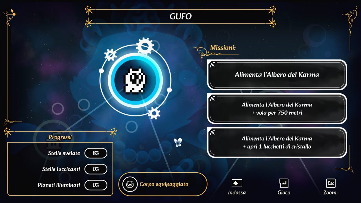 Gufo, rana, cane, giureremmo di aver visto anche uno strano gattino nascosto da qualche parte nel santuario di selezione dei personaggi, d’altronde KarmaZoo è pieno di segreti e forse non ce ne saremmo mai accorti se non avessimo frugato in quei misteriosi libri collezionabili da sbloccare con punti Karma.