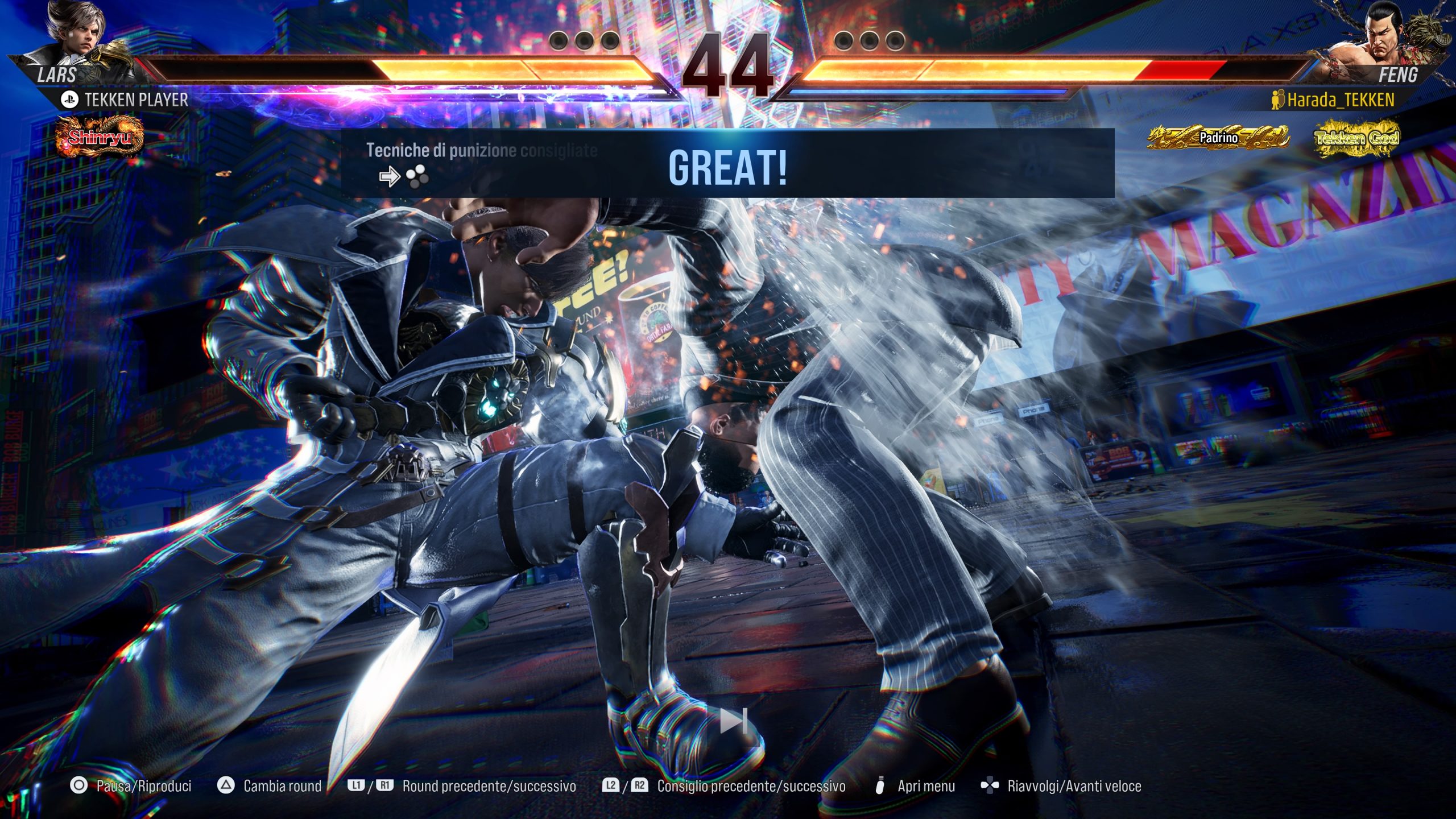 Un altro elemento utile alla nostra crescita come picchiatori professionisti sono i replay: è possibile scaricare quelli di giocatori più esperti e analizzarli, oppure sfruttare i nostri stessi e metterli al vaglio del sistema di gioco, che analizzerà in modo dinamico i combattimenti per suggerirci consigli utili su come portare a segno un attacco più efficace o evitare danni. In qualsiasi momento possiamo prendere il controllo del nostro personaggio e testare la mossa suggerita per valutarne l’effettiva validità. Può volerci un attimo per impratichirsi con il sistema, e non avendo a disposizione l’online mi sono dovuta basare sui miei replay, ma una volta presa confidenza si possono registrare specifici scontri proprio per farli analizzare e capire come e dove migliorare.