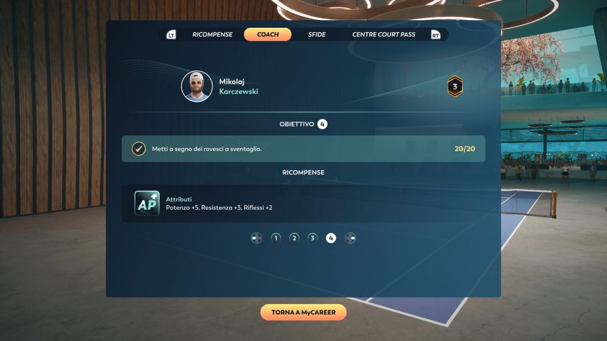 Superato questo primo tutorial inizierà la modalità carriera vera e propria, con le tantissime opzioni a disposizione e la cosa che più di tutto mi ha fatto storcere il naso: l’interfaccia di gioco è macchinosa e complicata, non è facile capire a quale tasto corrisponde cosa e in che sottomenù si trovino le voci da cliccare. Sicuramente qualcosa da rivedere in un ipotetico Top Spin 2K26.
