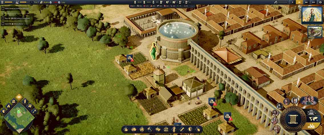 Collocare negli spazi giusti decorazioni, il foro, i templi, le terme e così via, dà una chiara idea dell’organizzazione maniacale che avevano i romani anche con l’architettura cittadina e contemporaneamente soddisfa la componente estetica. Il comparto sonoro anche aiuta a calarsi in una civitas romana, con un tocco cinematico-epico che non guasta e che, anzi, esalta proprio la caratteristica imperiale andante dell’antica Roma.