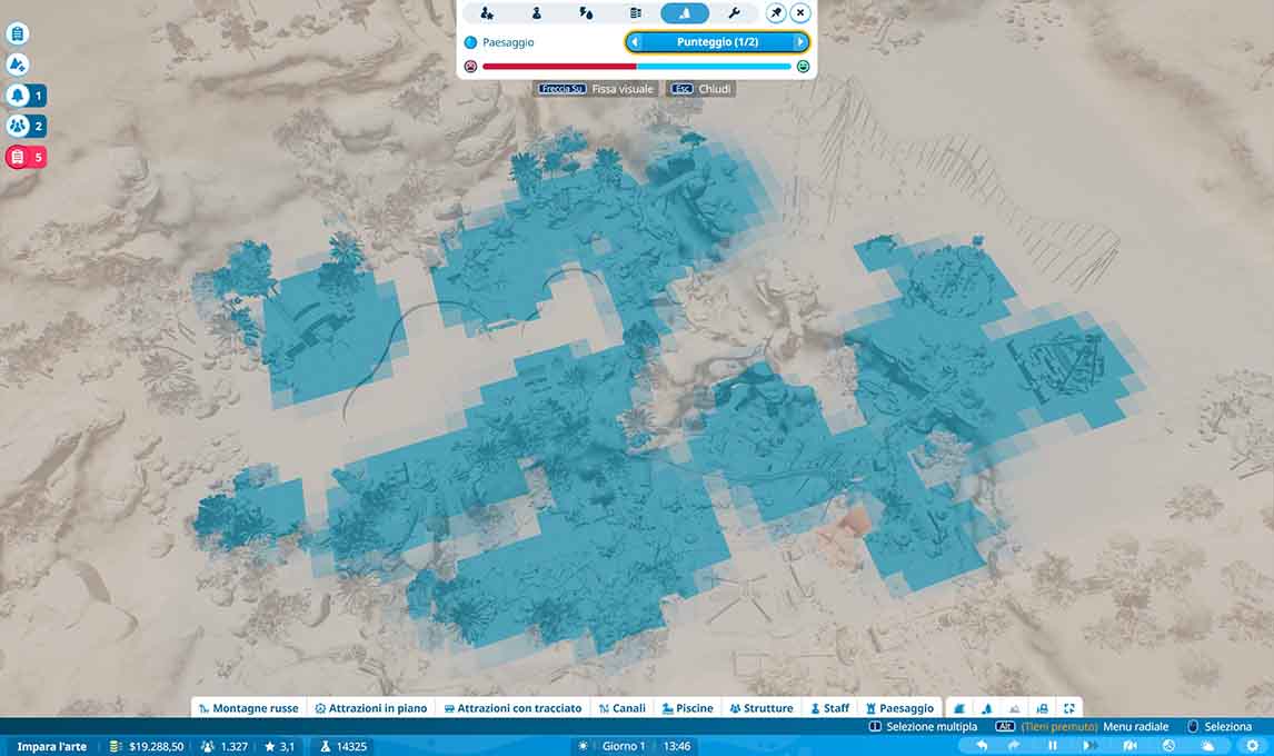 Parlando di logistica, ho particolarmente apprezzato l’aggiunta delle heatmap, che permettono di avere una panoramica generale sull’andamento del parco in diversi ambiti: consumi, divertimento, manutenzione, ecc… un vero peccato però che, per il resto, la componente gestionale di Planet Coaster 2 non sia approfondita come la sua componente sandbox. Anche da questo punto di vista, contiamo che il gioco base possa essere un trampolino di lancio per DLC più specifici.
