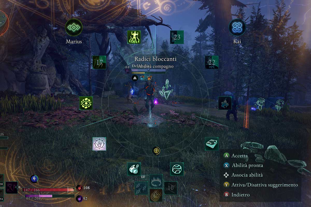 Ad ovviare al ritmo incalzante di certe fasi ci pensa la pausa tattica, attivabile ogniqualvolta apriamo la ruota delle abilità – possiamo comunque assegnarne qualcuna a dei tasti di lancio rapido. La ruota ci permette anche di selezionare le abilità dei nostri compagni di squadra, il cui utilizzo al momento giusto può fare davvero una differenza significativa tra vittoria e sconfitta.
