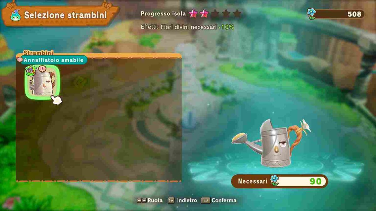 Troveremo Strambini un po’ ovunque, durante la storia, in ceste nascoste nell’openworld, nei sacrari con minigiochi e sfide puzzle intriganti. Un’altra opzione è lo Spiritalbero, dungeon roguelike con livelli casuali, progressivamente più difficili, nei quali è possibile incontrare Strambini particolarmente forti. Non conta dove li incontriate, l’importante è trovarli e portarli alla statua della Dea nel presente per farli tornare umani con l’aiuto dei fiori speciali che crescono solo nel nostro villaggio ogni giorno reale. Se non vi piace questa limitazione giornaliera però non disperate perché ci sono anche missioni che permettono di ottenere fiori in qualsiasi momento, illimitatamente, e con un po’ di gestione è semplice raccattarne tantissimi.