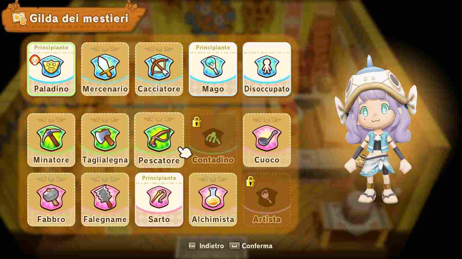 Il primo incontro con il re di Mistenia, Leno, è un po’ turbolento perché nessuno nel regno può essere disoccupato! I mestieri sono alla base dell’organizzazione della città che è dotata di una gilda per ognuno di essi e di Maestri addetti all’insegnamento di queste arti. Le prime ore di gioco le dedicherete dunque a imparare tutti i mestieri (non è obbligatorio sbloccarli, ma altamente consigliato per iniziare a conoscere e potenziare sin da subito tutto le diverse meccaniche di gioco).