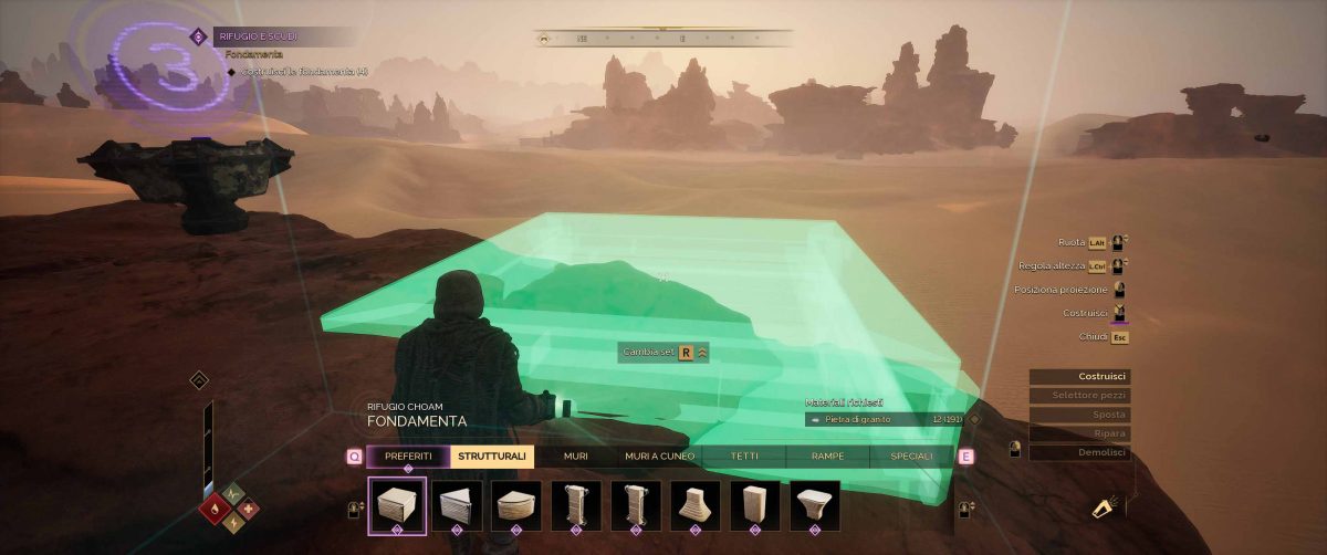 Il sistema di costruzione permette di costruire fino a 3 diverse basi, dotate di limiti di energia e risorse. Più che dimore per il proprio avatar, sono veri e propri centri operativi che supportano le spedizioni verso i vari punti utili di Arrakis. Col tempo, si sbloccano moduli ed estetiche sempre più avanzate, così da personalizzare sempre al meglio le proprie costruzioni.