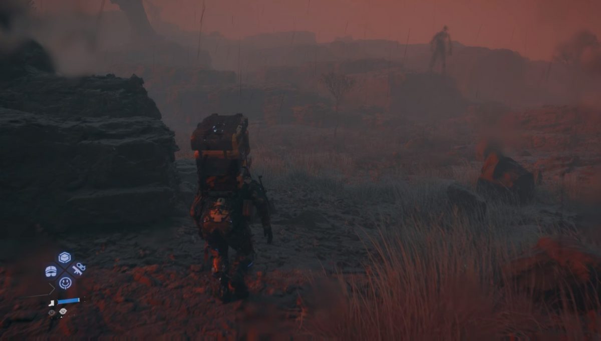 Anzitutto il combattimento corpo a corpo è molto legnoso; questo aspetto non è necessariamente un difetto se viene giustificato all’interno della lore, considerando che Sam non è un soldato, non conosce il CQC (a differenza di Snake ad esempio). Sempre per coerenza narrativa, di default le munizioni MF delle armi di Sam avranno un lock in potenza in modo da non risultare letali (blocco che può comunque essere rimosso, lasciando libertà di approccio al giocatore). Questo perché, come ben sapete, ogni morto nel mondo di Death Stranding costituisce un pericolo per la comunità. Infatti se un cadavere non è smaltito in un inceneritore entro circa 48 ore dal decesso entra in stato di necrosi e in contatto con qualsiasi forma di vita causa un’esplosione che distrugge l’intera zona circostante causando una voragine. Per questo le varie organizzazioni “civili”, come ad esempio la Drawbridge, hanno imposto restrizioni all’uso di armi letali. Esistono tuttavia delle fazioni umane completamente disinteressate al rischio delle voragini che utilizzano comunque armamenti mortali.