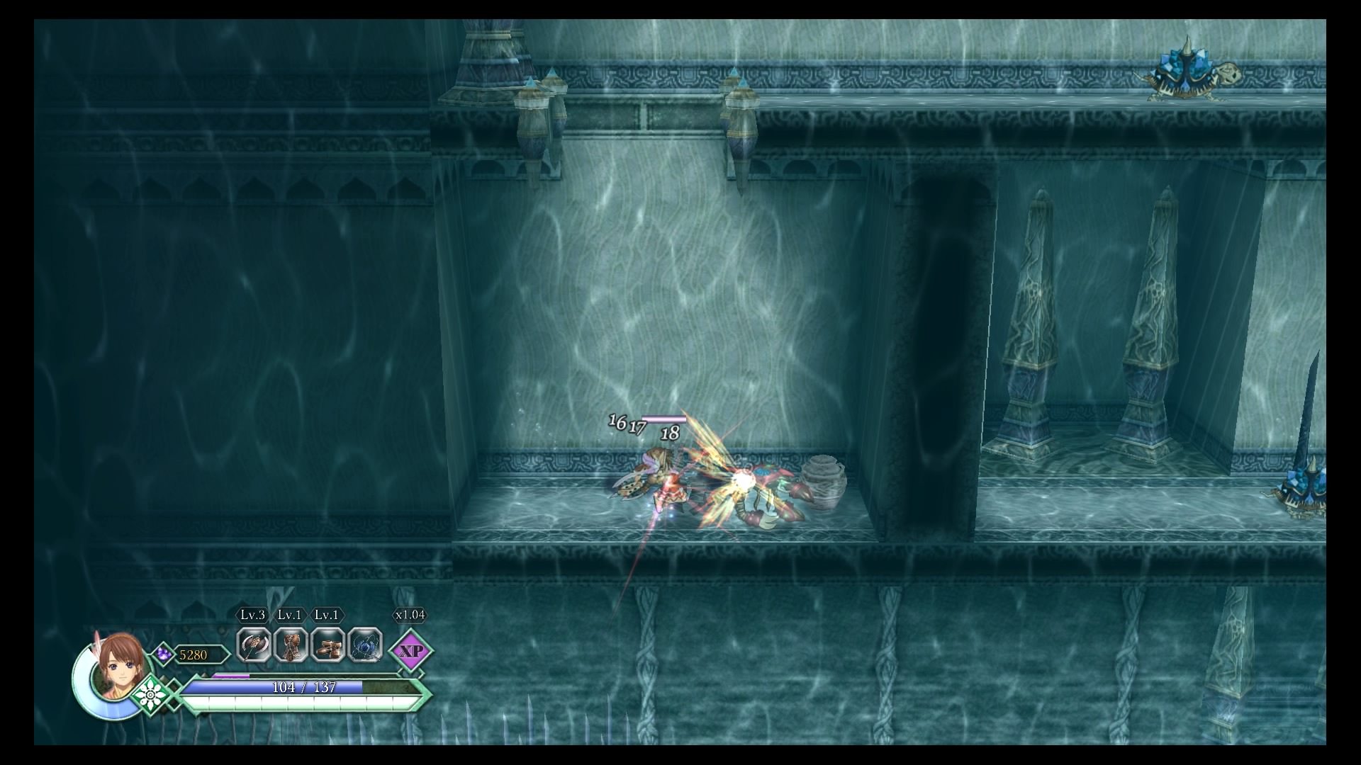 Purtroppo in alcuni punti risente tantissimo del fatto che bisogna sempre premere X per far avanzare i dialoghi, e ci sono sessioni anche da venti minuti di soli dialoghi da mandare avanti così, cosa che può diventare monotona e la tentazione di premere quadrato e mandare avanti il dialogo diventa molto forte. Peccato che saltando i dialoghi non solo si rischia di perdere pezzi della trama, che non essendo comunque il punto di forza del gioco non sarebbe nemmeno una grande perdita, il problema si fa bruciante quando si perdono istruzioni su dove andare, cosa fare e come utilizzare certi power up e abilità. E succede, spesso, anche perchè non c’è alcun dialogo doppiato, tranne l’introduzione all’inizio di una nuova partita. Soprattutto se avete fretta, per un qualsiasi motivo.