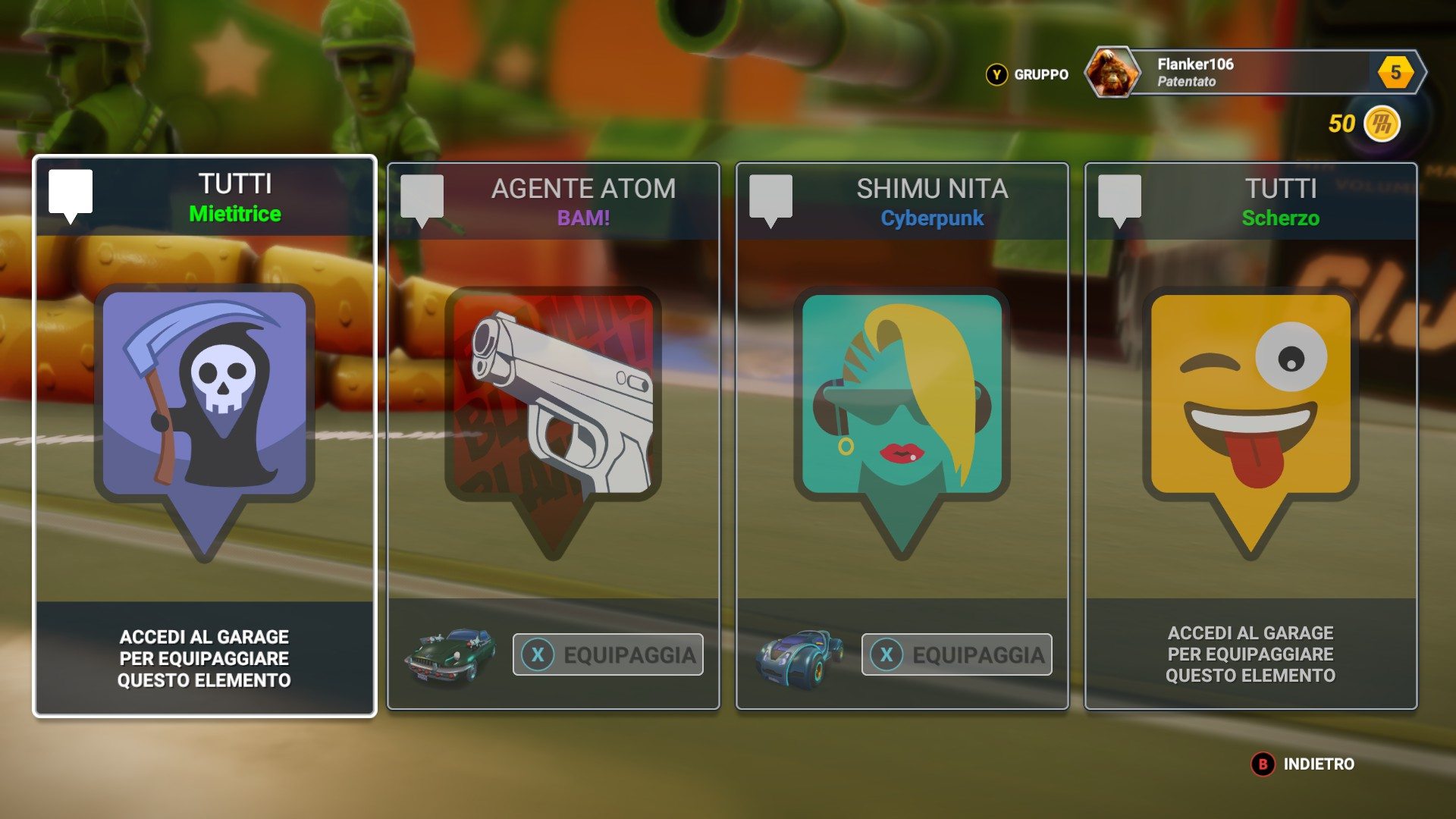 Ogni volta che avanzerete di livello si riceverà una cassa contenente diverse ricompense come skin, audio, lapidi ed emote uccisione (vi ricorda qualcosa?). Alcune di queste skin modificheranno completamente la vostra macchina dando un tocco di diversità nel ristretto parco auto. Ad ogni auto è associato un personaggio dai nomi divertenti come Shimu Nita, o l’ambulanza Penny Cillin e Loper Haio.