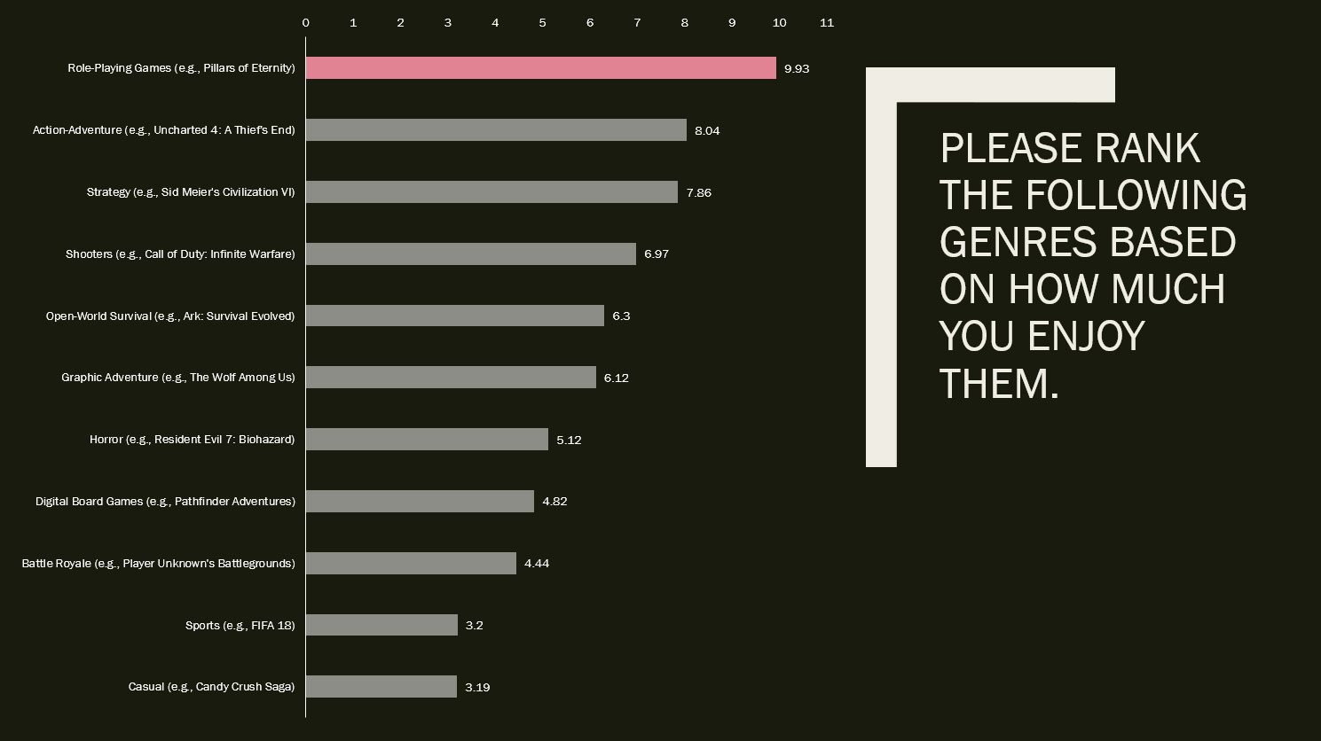 La maggior parte dei partecipanti al sondaggio rispecchia, secondo Obsidian, la fascia di età del giocatore tipico: dai 20 ai 34 anni.